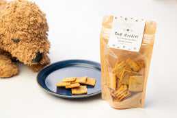 さつまいも、米粉、ふすま、エクストラバージンオイルのシンプルな食材から作られるクッキーですが、湘南小麦のふすまを入れることで、より甘みと香ばしさがプラスされた味わい深いクッキーです。 (ふすまとは小麦粉の胚芽の部分で食物繊維、ミネラル、鉄分などが豊富でお腹の調子を整えてくれる効果が期待できます) お腹の調子を整えたいわんちゃんにオススメで、飼い主さんももちろん一緒に楽しめるクッキーです!