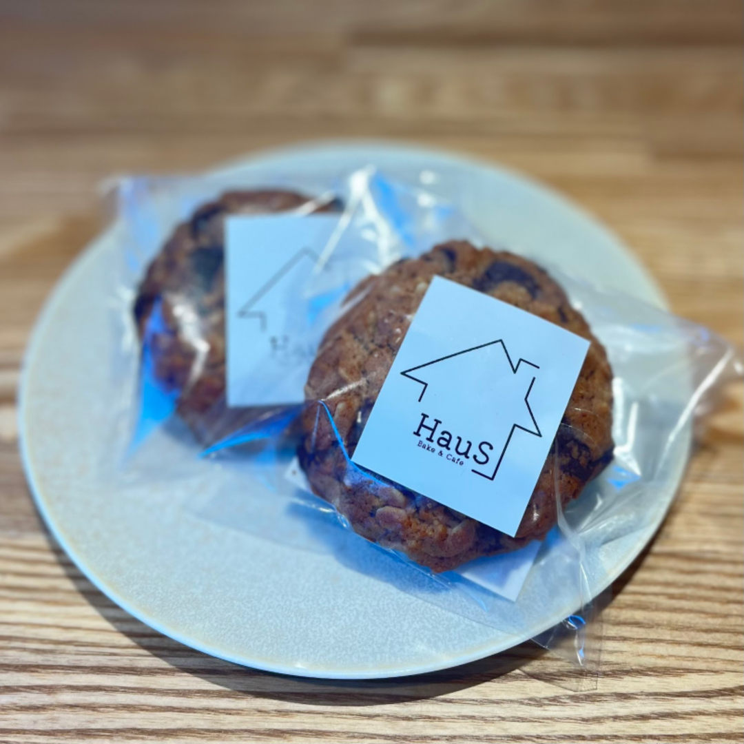 オートミール、クルミ、ビターチョコチップがごろごろ入った、ザクザク系クッキー。1枚でもボリューム感のあるクッキで、生地にふすま(小麦粉の胚芽の部分を粉砕した粉)も練り込んでいることもあり腹持ちがいいので忙しい日の朝食がわりや小腹が空いた時のおやつにもおすすめです。