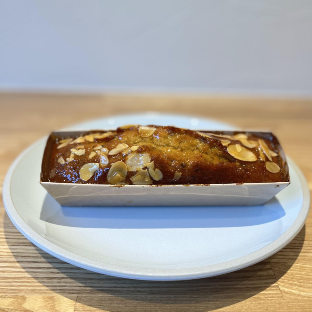 女性に大人気パウンドケーキ!!アールグレイの茶葉が入った生地にラム酒漬けにしたイチジクがゴロゴロゴロ入ったパウンドケーキ。上にはアーモンドスライスと酸味のあるアプリコットジャムを塗って仕上げました。
